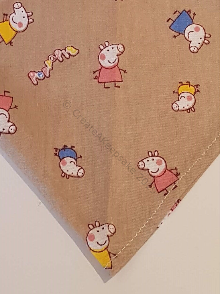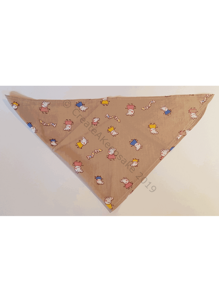 Brown Pet Bandana With Peppa Pig-Like Pattern - Personalised