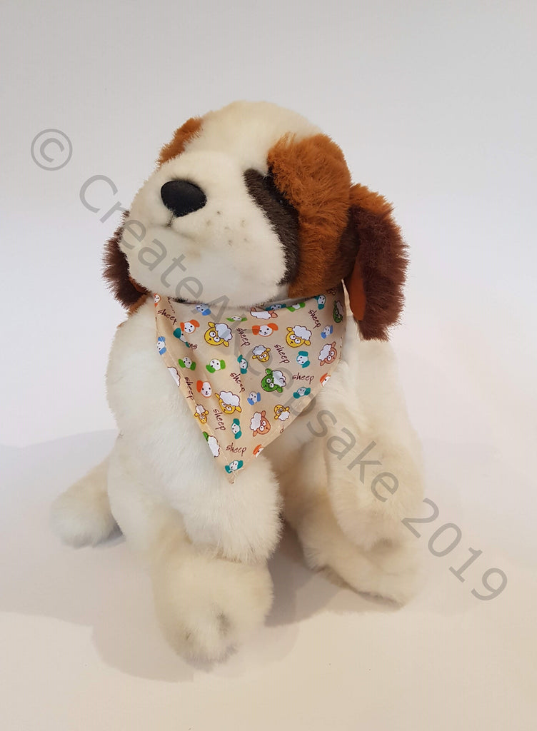 Image shown for pattern illustration - correct layout of bandana can be seen on toy dog (no pets were harmed during photography!)